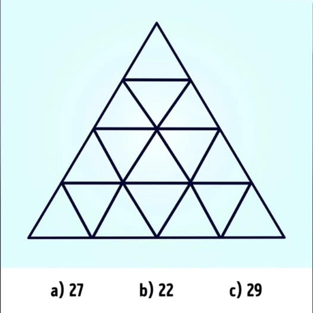 Schauen Sie sich das Bild genau an. Auf den ersten Blick scheint es sich um ein großes Dreieck zu handeln, das aus kleineren Segmenten besteht. Leicht? Nicht unbedingt! Denn die eigentliche Frage, über die in den sozialen Netzwerken gesprochen wird, lautet: