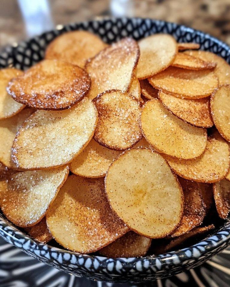 Zucker und Zimt vermischen und die Apfelscheiben gleichmäßig damit bestreichen.