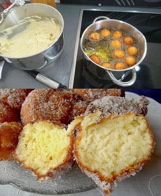 Die noch warmen Bällchen in Zucker wälzen und servieren.