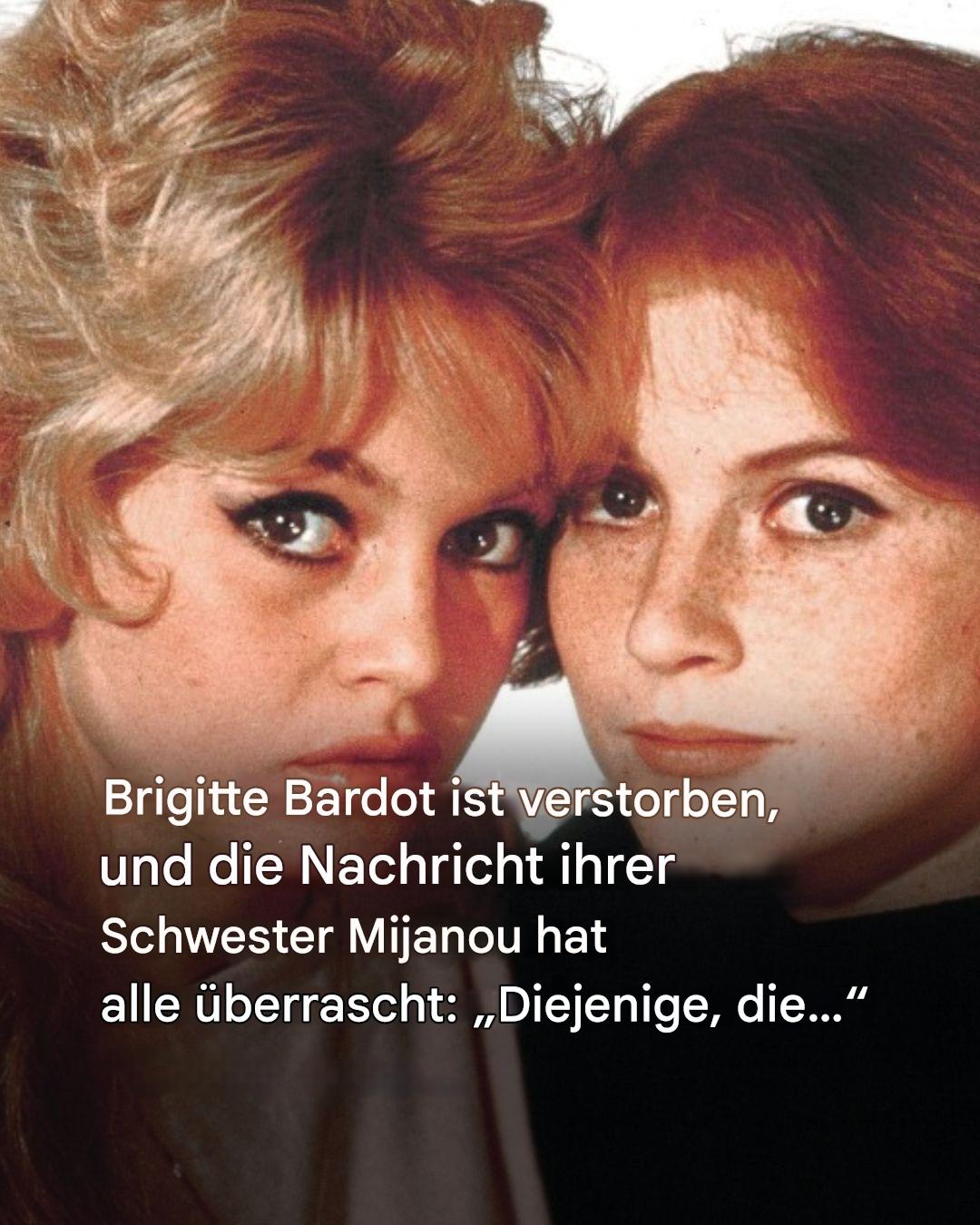 Nach der Bekanntgabe des Todes von Brigitte Bardot am Sonntag, dem 28. Dezember, im Alter von 91 Jahren, teilte ihre Schwester Mijanou eine bewegende Nachricht auf Facebook.