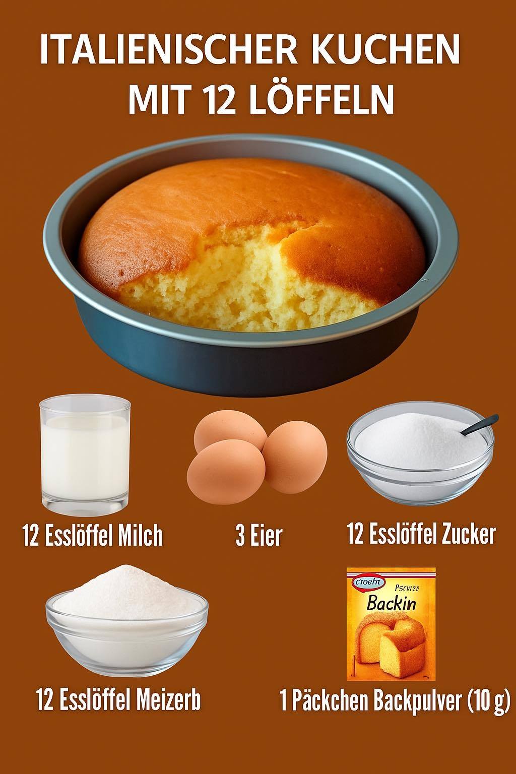 📝 Zutaten: 12 EL Mehl 12 EL Zucker 12 EL Milch 12 EL neutrales Öl (Sonnenblumen- oder Olivenöl) 3 Eier 1 Päckchen Backpulver (10 g) 1 EL Vanilleextrakt oder Zitronenabrieb 👩🍳 Zubereitung: 🔥 1. Backofen vorheizen Heizen Sie Ihren Backofen auf 180 °C (Umluft) vor und fetten Sie eine runde Backform mit ca. 22 cm Durchmesser ein. 🥄 2. … Read more