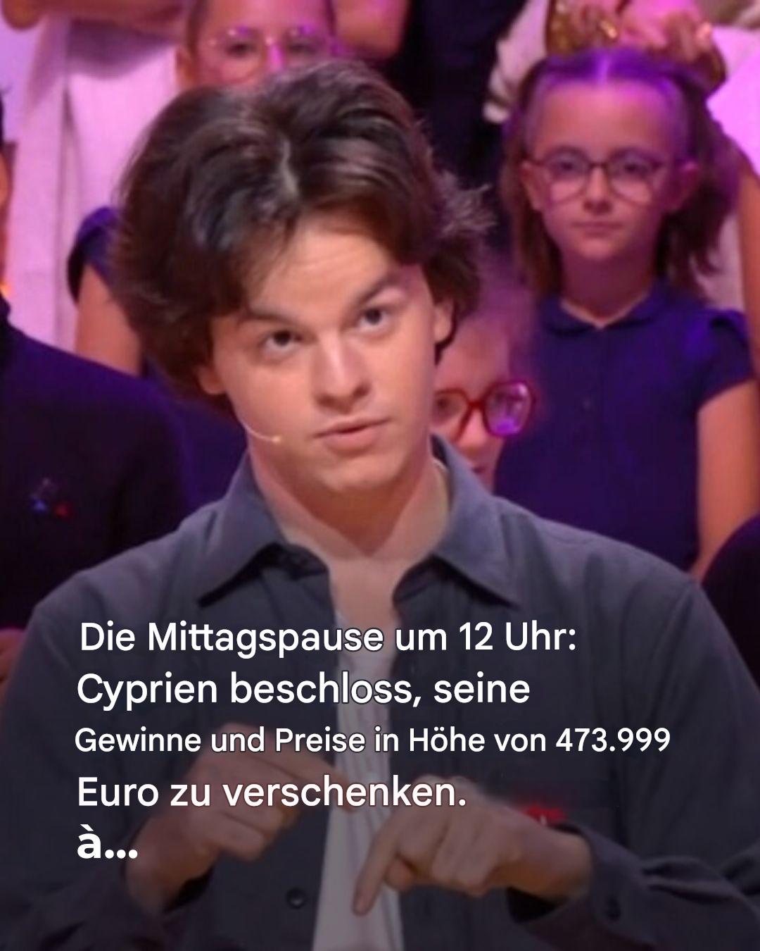 Wie er unseren Kollegen anvertraute, plant er, die letzten Geschenke, die er erhalten hat, an Secours Populaire (eine französische Wohltätigkeitsorganisation) zu spenden. Damit möchte er etwas Gutes tun und vermeiden, materielle Güter anzuhäufen, wenn er sich bald alles leisten kann, was er möchte. „Diese Menschen brauchen es dringender als ich“, sagte er offen. Cyprien, der bereits großzügig gegenüber seiner Familie ist und sich der Privilegien bewusst ist, die er dank „Les 12 Coups de Midi “ erlangt hat, erklärte außerdem: „Angesichts dessen, wie viel Glück ich habe, in dieser Show dabei zu sein und solche Stars um mich herum zu haben, die ich mit den Menschen um mich herum teilen kann … Es wäre eine Schande, nicht zu versuchen, denjenigen zu helfen, die es brauchen.“