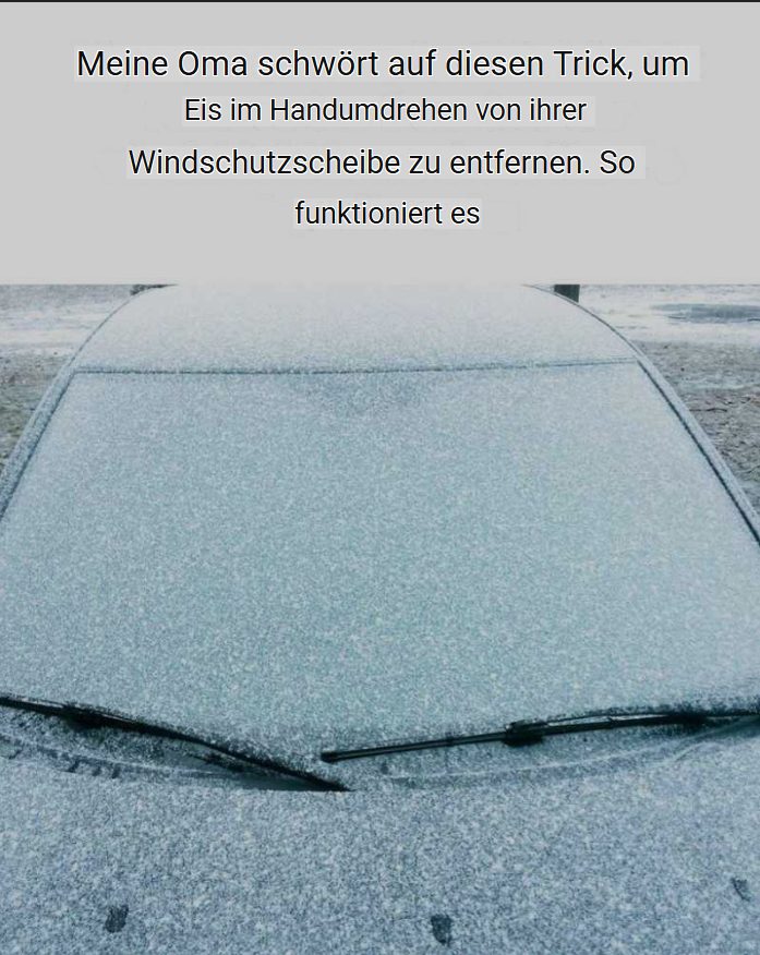 Wintermorgen können lästig sein, besonders wenn Sie es eilig haben und die Windschutzscheibe Ihres Autos mit einer dicken Eisschicht bedeckt ist. Viele Menschen greifen auf das Schaben zurück, was zeitaufwändig und anstrengend sein kann. Meine Oma hat jedoch einen einfachen Trick, auf den sie schwört, der das Entfernen von Eis von der Windschutzscheibe zum Kinderspiel macht. In diesem Artikel geht es um ihre Methode und es wird erklärt, wie sie funktioniert und warum sie genau die Lösung sein könnte, die Sie für frostige Morgen brauchen.