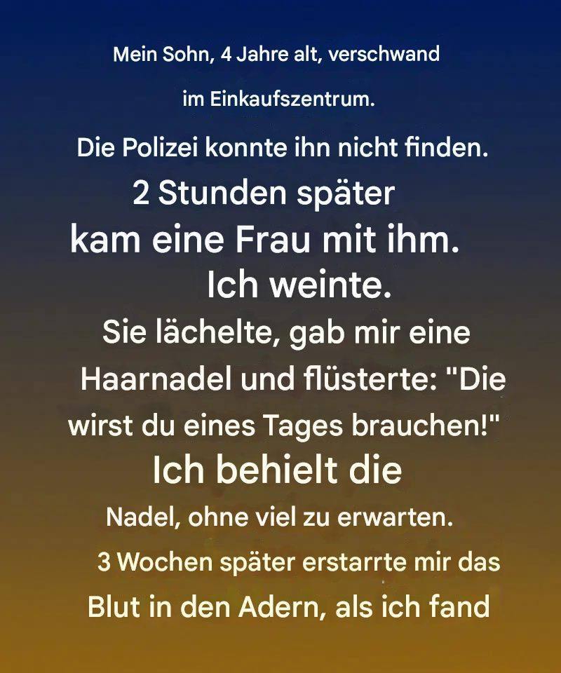 Mein vierjähriger Sohn verschwand in einem vollen Einkaufszentrum. Die Polizei suchte überall, aber er war nirgends zu finden.