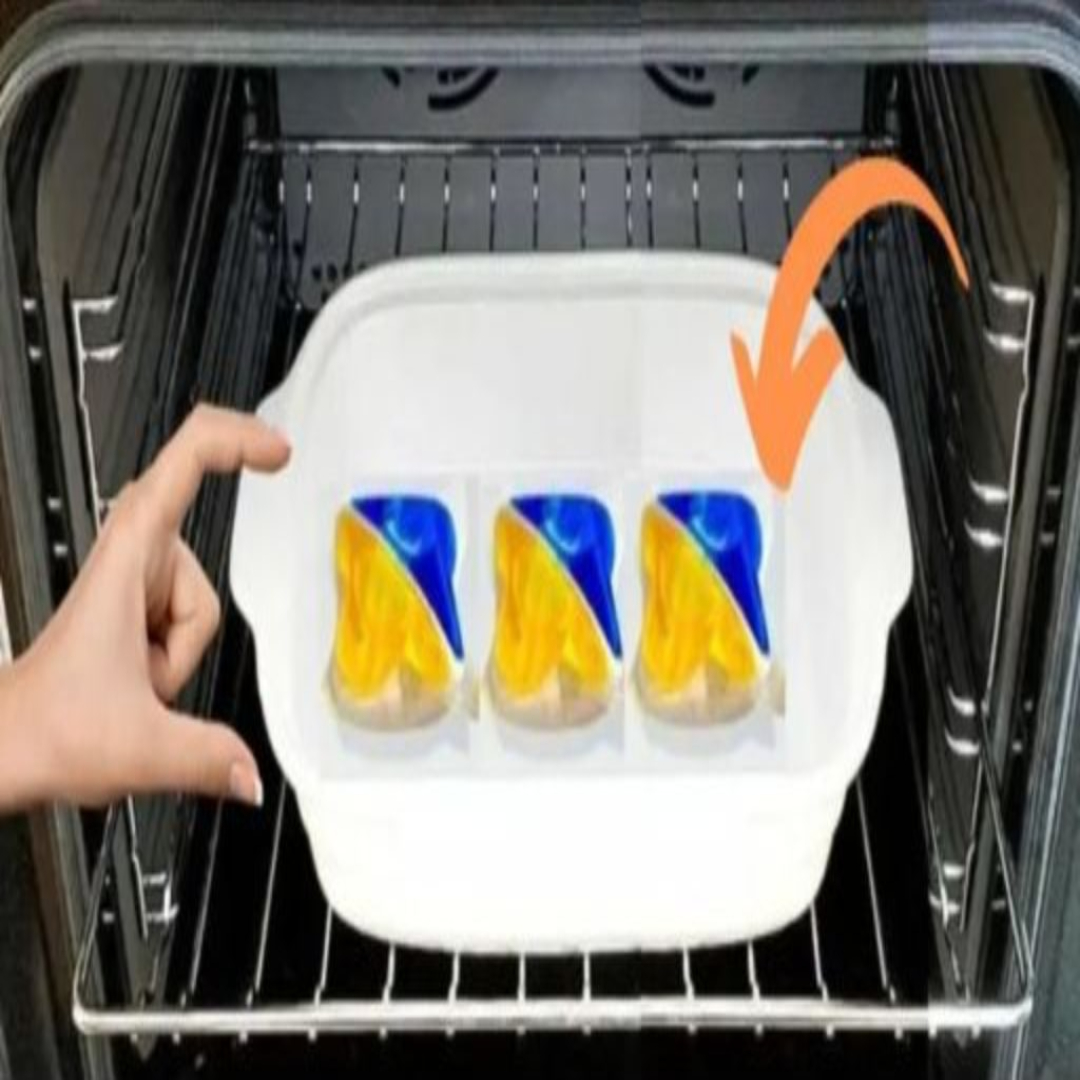 Um die magische Entfettungskraft zu nutzen, müssen Sie lediglich den Backofen auf 100 °C vorheizen. In der Zwischenzeit legen wir die Spülmaschinenkapsel oder -tablette auf ein kleines Backblech und gießen warmes Wasser darüber, bis es bedeckt ist.