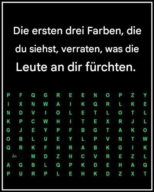 Hast du dich jemals gefragt, was Menschen insgeheim an dir fürchten? Unser Unterbewusstsein nimmt versteckte Signale wahr, und die ersten drei Farben, die du in diesem Bild siehst, könnten verraten, wie andere dich wahrnehmen. Jede Farbe steht für unterschiedliche Persönlichkeitsmerkmale, die bei den Menschen um dich herum Bewunderung, Einschüchterung oder Unbehagen hervorrufen können. Lass uns herausfinden, was deine Farbwahl über die Ängste der Menschen in Bezug auf dich verrät