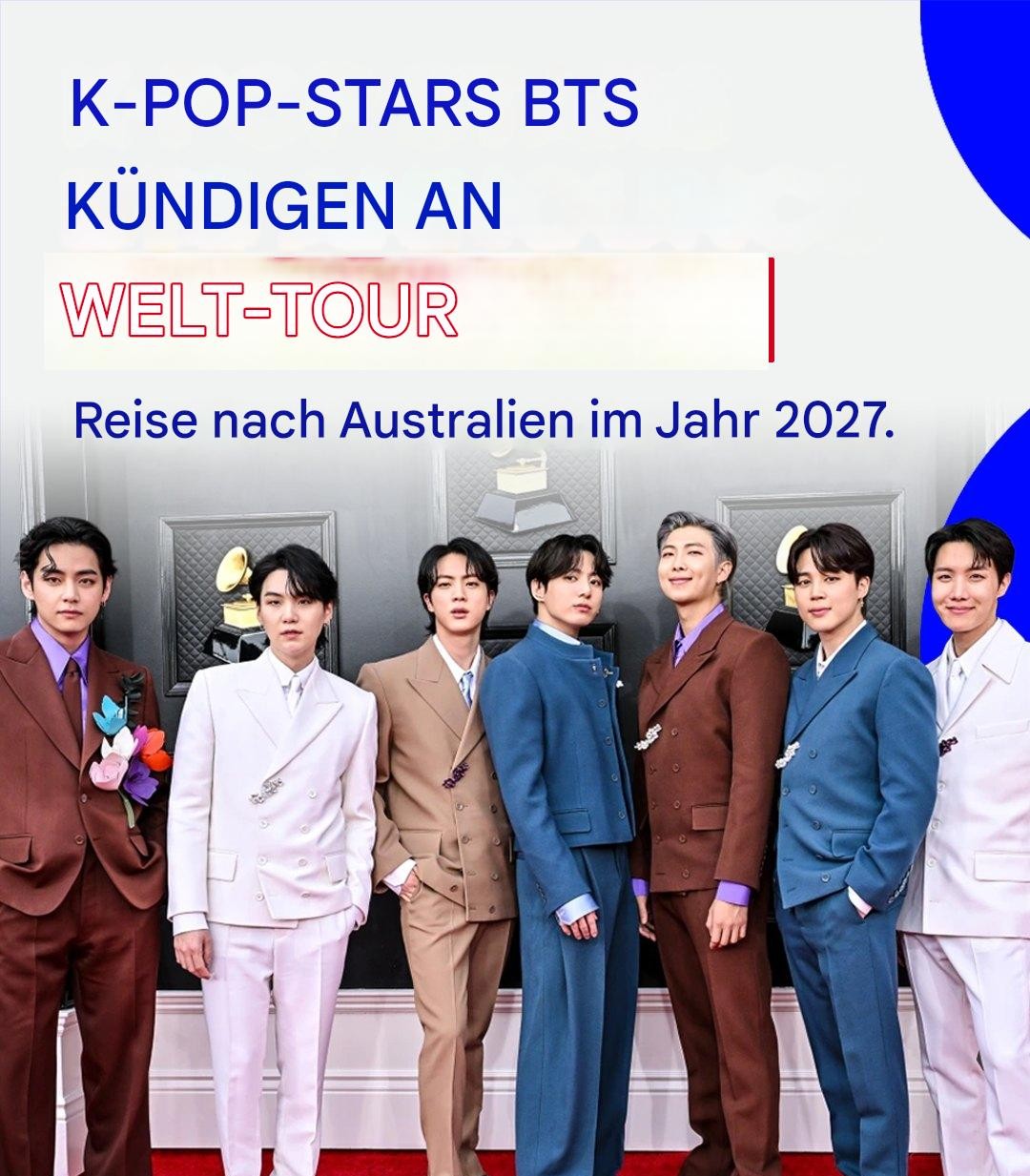 Die überaus beliebte südkoreanische Boyband trat zuletzt 2017 in Australien auf und hat seit 2022, als sie aufgrund des obligatorischen Militärdienstes zur Auflösung gezwungen wurde, keine öffentlichen Auftritte mehr gegeben.
