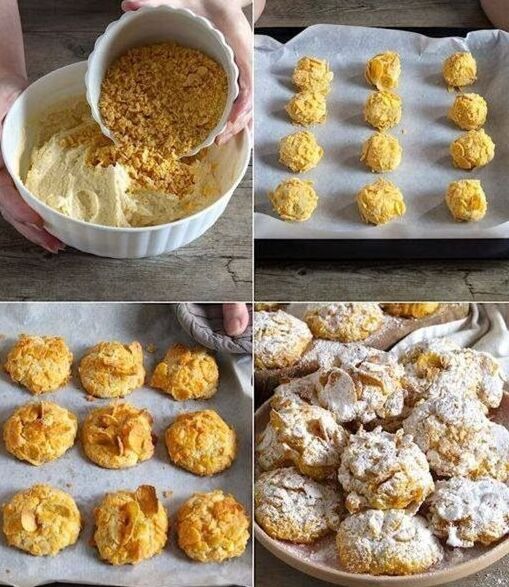 Die sind in nur 13 Minuten im Ofen fertig, Fantastische WüstenrosenZutaten2 Eier, (Größe M)1 Packung Vanillezucker250 g Butter, (weiche)200 g Zucker400 g Mehl½ Packung Backpulver5 Tasse/n CornflakesAnleitungDas Rezept wird auf der nächsten Seite fortgesetz Nächste→