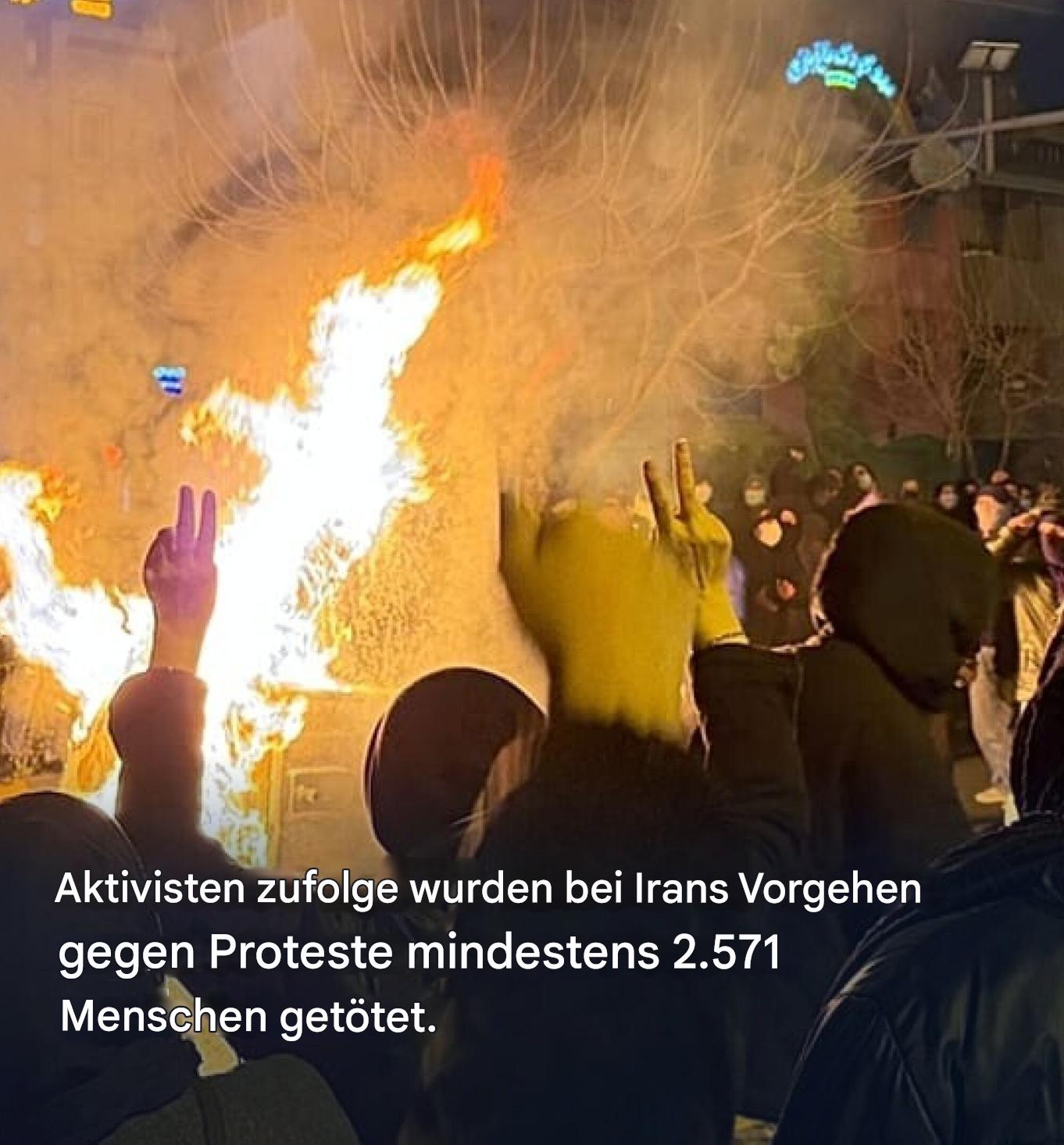 Bei den anhaltenden Protesten im Iran sind mindestens 2.571 Menschen ums Leben gekommen, berichtete eine in den USA ansässige Menschenrechtsgruppe am Mittwoch, während die Behörden nach tagelangem landesweitem Blackout die Kommunikationsverbindungen teilweise wiederherstellten.
