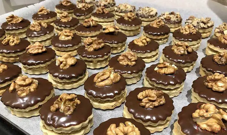 Schokolade zum Überziehen Walnusshälften zum Verzieren