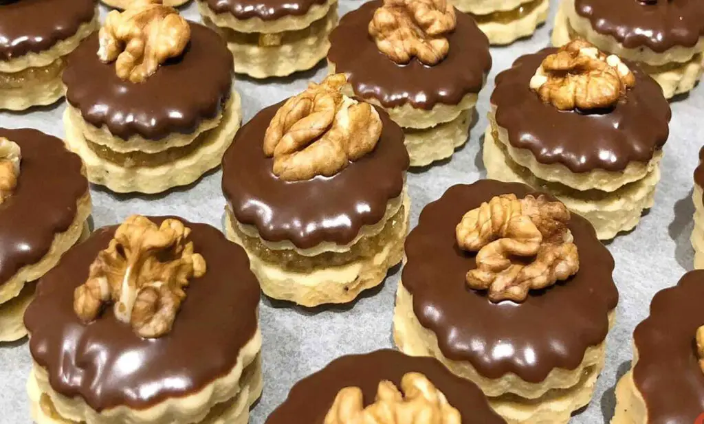5. Zum schluss die Törtchen jeweils mit einer Walnusshälfte verzieren und dann fest werden lassen.