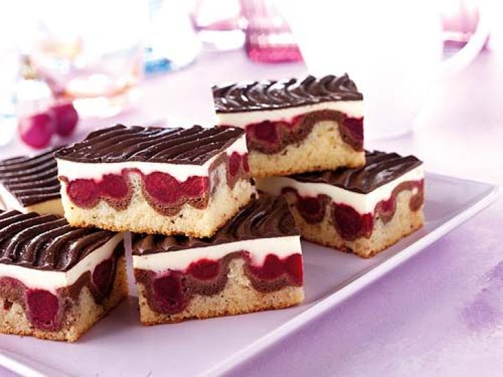 Diese wellige Struktur der Dunavski Valovi wird durch eingedrückte Sauerkirschen erreicht, die den dunklen Teig in den hellen Teig drücken und ihm ein charakteristisches Aussehen verleihen. Aber die Sauerkirschen verleihen diesem Kuchen nicht nur ein schönes Aussehen, sondern machen den Teig auch saftig und geben ihm einen wunderbaren besonderen Geschmack. Auf die Oberseite des Kuchens kommt eine leckere Vanillecreme, die ich lange geschlagen habe, um eine glatte und glänzende Textur zu erhalten, und als abschließendes Detail eine Schokoladenglasur. Dunavski Valovi haben alles, was man für einen erstklassigen hausgemachten Kuchen braucht, und da sie die Geschmacksrichtungen von Sauerkirschen, Vanille und Schokolade vereinen, sind sie praktisch für jeden geeignet und ideal für größere Versammlungen – schreibt die Autorin auf der Website Recepturra.
