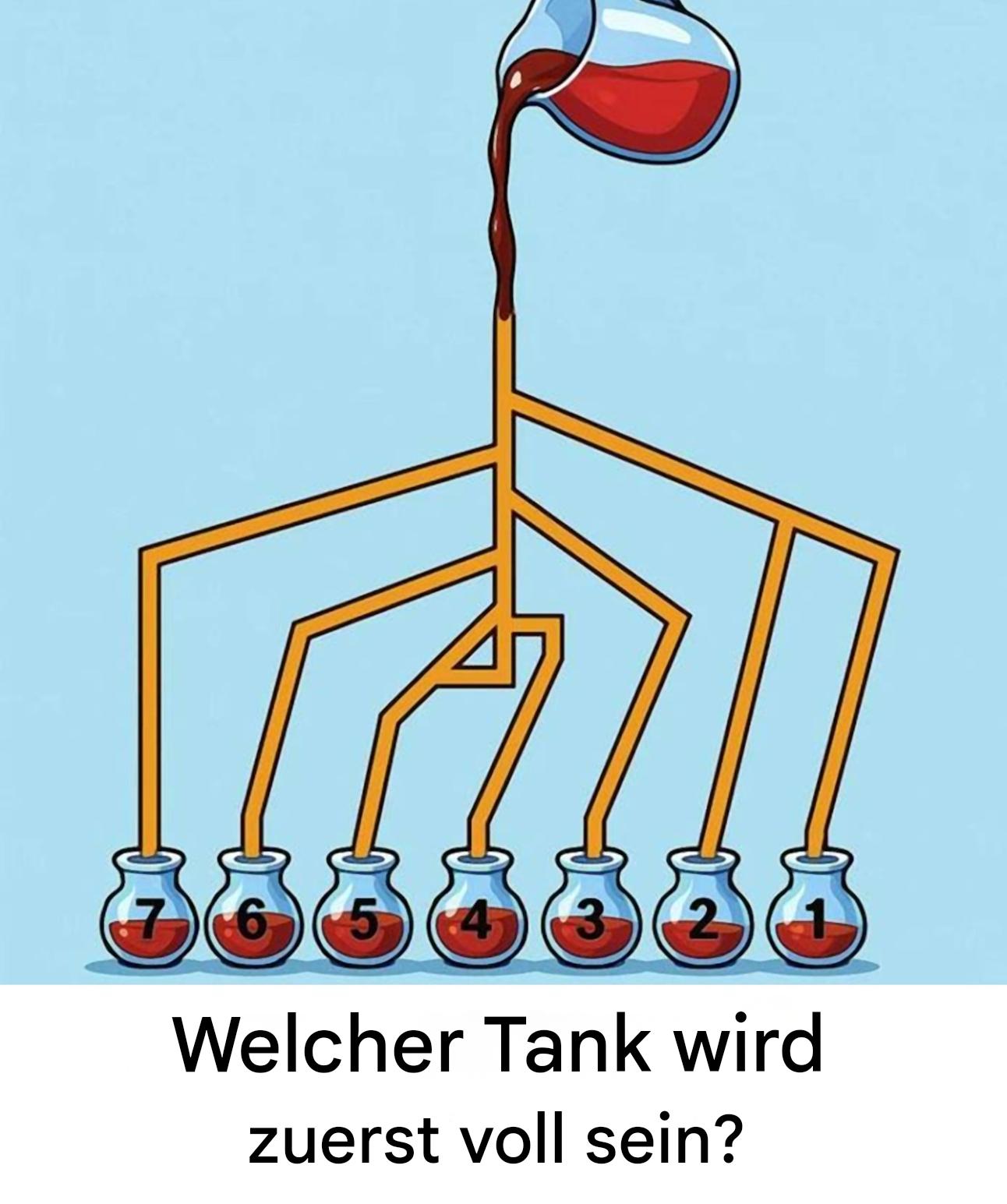 Ein Wasserhahn, Rohre, sieben Behälter… Und eine scheinbar einfache Frage: Welches füllt sich zuerst? Diese Art von Rätsel ist beliebt, weil sie weniger Berechnungen erfordert als feine Beobachtung. Hier ist der Schlüssel, dem Drang zu widerstehen, auf das Gefühl zu reagieren und dem Weg des Wassers zu folgen, als wärst du selbst ein Tropfen, der bereit wäre, die Strecke hinunterzurasen.