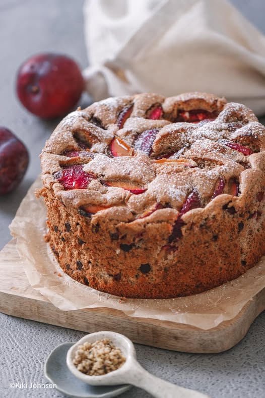 Einfacher Walnusskuchen mit Pflaumen & Schokostückchen