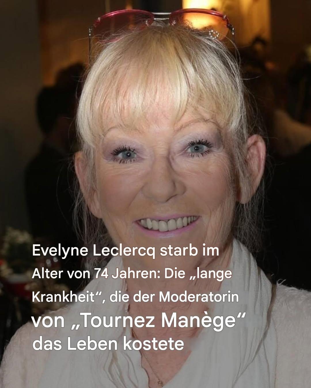 Traurige Nachricht für Fernsehfans. Évelyne Leclercq,  die Moderatorin der Spielshow „Tournez Manège“ auf TF1 , ist im Alter von 74 Jahren verstorben, wie ihre Familie am Mittwoch, dem 31. Dezember, in einer Pressemitteilung bekannt gab.  Sie starb in Grasse in der Region Alpes-Maritimes , „umgeben von ihrer Familie, nach langer Krankheit“. „ Sie hat die schwere Zeit mit außergewöhnlichem Mut ertragen, bis zuletzt getragen von der Liebe ihrer Familie“, sagte  ihre Tochter Céline Olive laut  Corse Matin . Die Moderatorin, die  zum Zeitpunkt ihres Todes ledig war , gehörte fast 20 Jahre lang, von 1975 bis 1997, zu den bekanntesten Gesichtern von TF1.