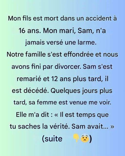 Ich verlor meinen Sohn mit 16 Jahren bei einem tragischen Unfall. Mein damaliger Mann, Sam, blieb distanziert und zeigte keinerlei Gefühle. Unsere Familie konnte den Verlust nicht verkraften, und wir ließen uns scheiden. Jahre später starb Sam. Wenige Tage später besuchte mich seine jetzige Frau.
