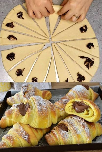 Am breiten Ende jedes Dreiecks einen Löffel Nutella platzieren.