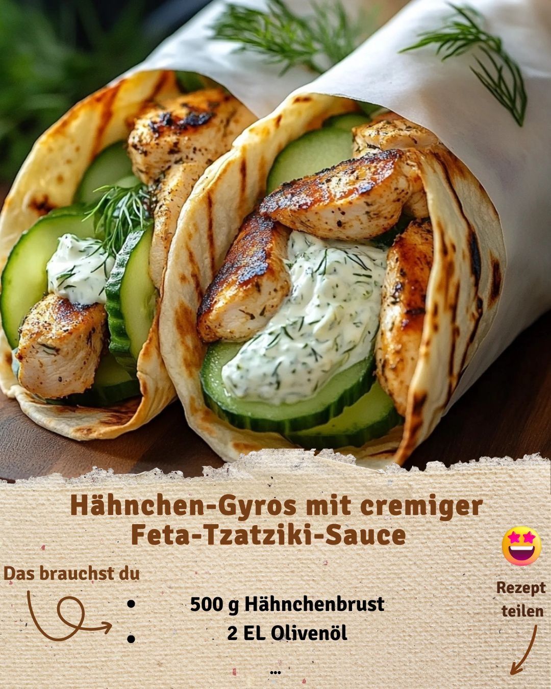 Hähnchen-Gyros mit cremiger Feta-Tzatziki-Sauce – Der Familienhit für schnelle Feierabende