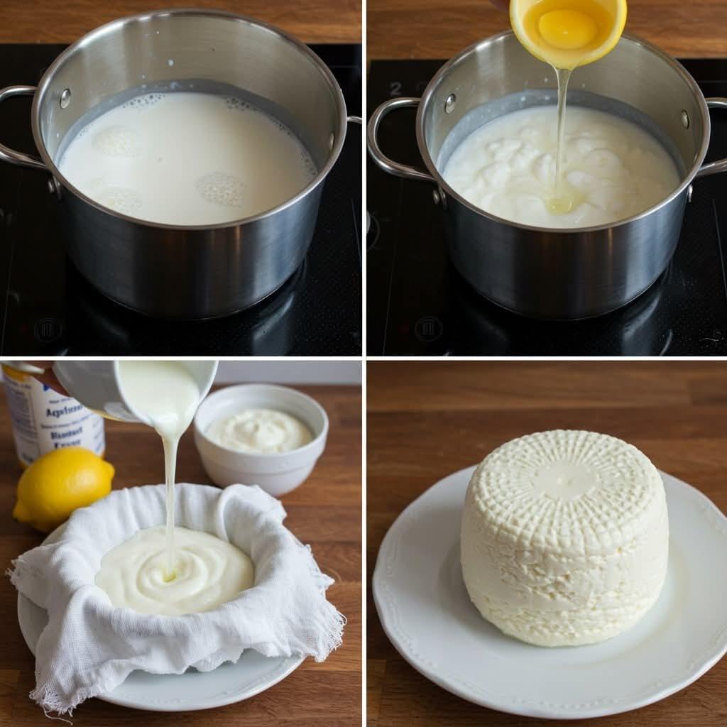 Hausgemachter Käse aus 1 Liter Milch, einer halben Zitrone und 1 Joghurt