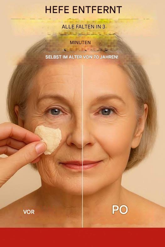 Hefe beseitigt alle Falten in 3 Minuten. Selbst im Alter von 70 Jahren. Beseitigt Falten.