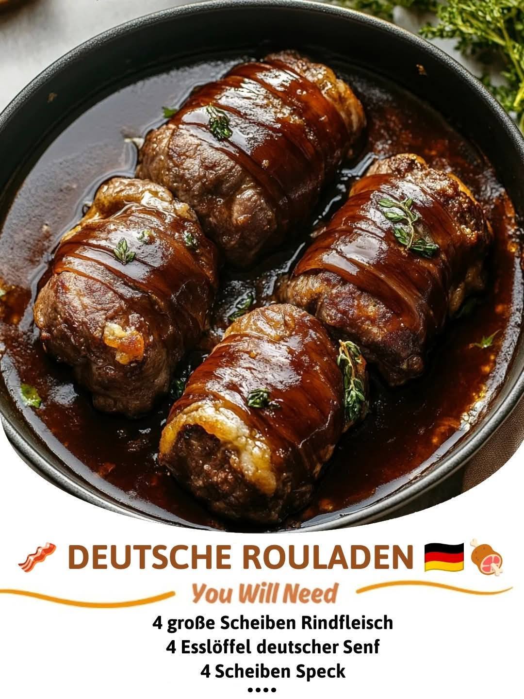 AnpinnenMit ein wenig Übung garantieren diese klassischen Rezepte jedem Mal einen Erfolg und bringen ein Stück echte deutsche Küche direkt auf deinen Tisch. Jedes Mal, wenn ich die Rouladen auf den Tisch stelle, schwebt ein Hauch von Festtag und Kindheitserinnerung durch die Küche. Egal ob an Feiertagen oder an einem gewöhnlichen Sonntag, dieses Gericht begeistert immer aufs Neue.