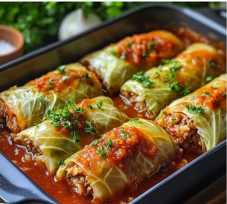 Die Kohlrouladen auf einem Teller anrichten, mit der Sauce bedecken und heiß genießen.