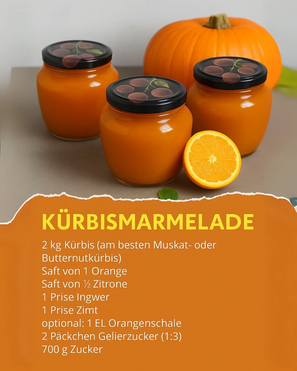 Wer diese Marmelade einmal probiert, wird schnell feststellen, dass Kürbis weit mehr kann, als nur herzhaft zubereitet zu werden. Er verwandelt sich in einen cremigen, aromatischen Brotaufstrich, der durch Ingwer, Zimt und frische Orangennoten eine besondere Tiefe erhält. Eine ideale Geschenkidee aus der Küche – und ein köstlicher Vorrat, der den Herbstgeschmack auch in den Winter hineinträgt.