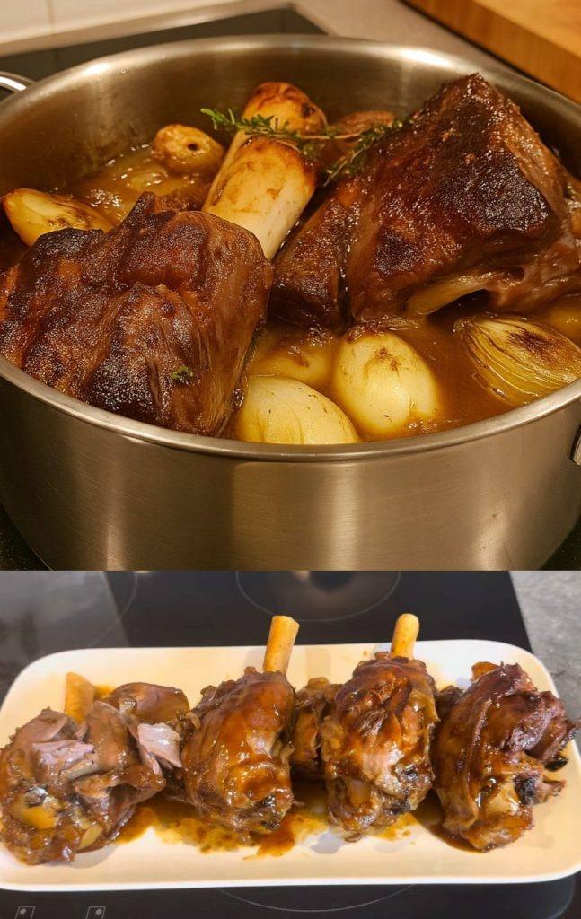 Langsam gegarte Lammkeule ist ein raffiniertes und wärmendes Gericht der französischen Küche. Das Fleisch wird unglaublich zart und nimmt eine feine Mischung aus Honig und aromatischen Kräutern auf. Dieses Rezept, ideal für ein Sonntagsessen oder einen besonderen Anlass, ist mit seiner sirupartigen Sauce und den mediterranen Aromen ein Genuss. Servieren Sie es mit Kartoffelpüree, geröstetem Gemüse oder einem Kartoffelgratin für ein wahrhaft elegantes Essen.