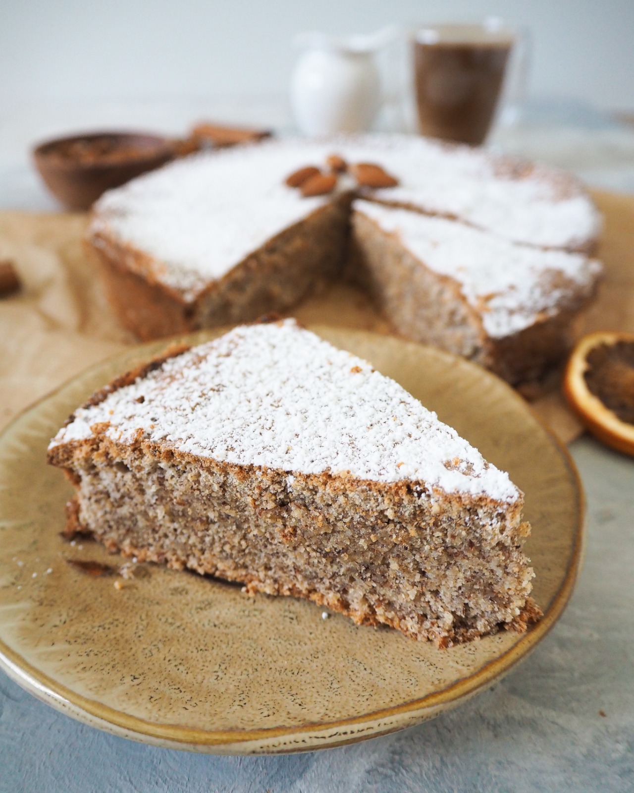 Den Kuchen im Ofen ca. 50 Minuten goldbraun backen. Danach komplett auskühlen lassen und abschließend mit Puder-Erythrit bestreuen.