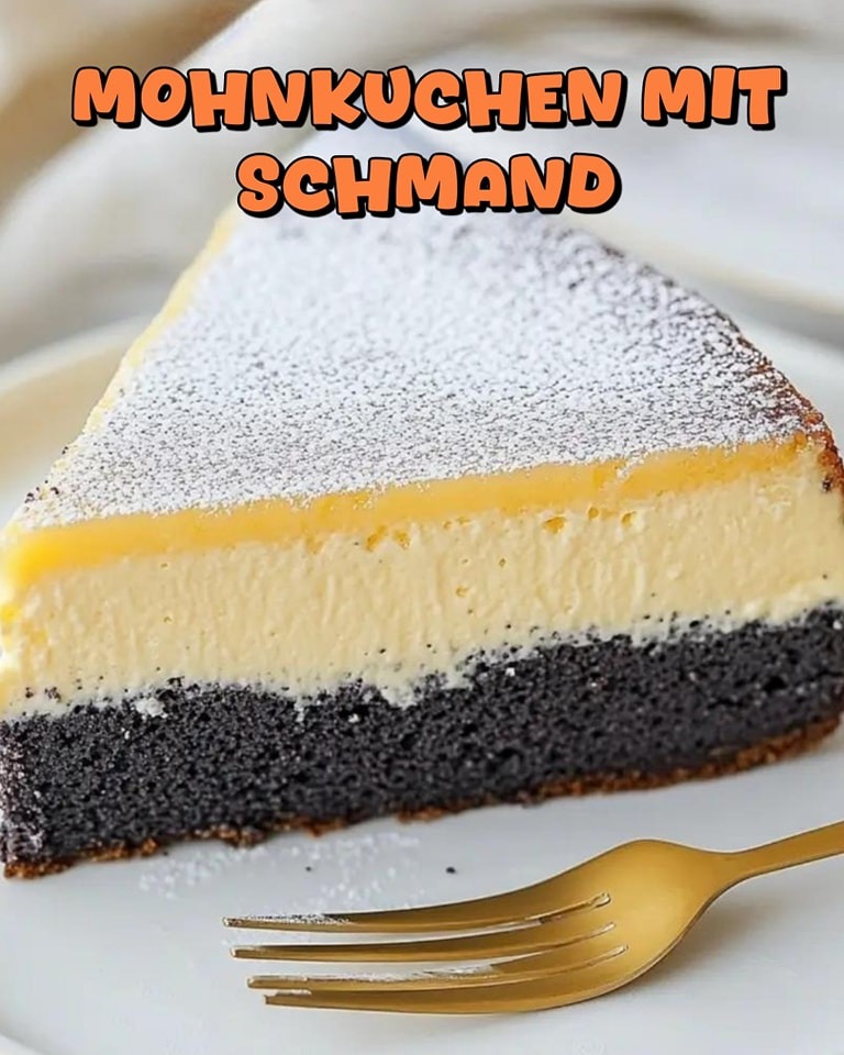 5️⃣ Befüllen: Mohnfüllung auf den Teig geben, dann den Schmandguss darüber verteilen.