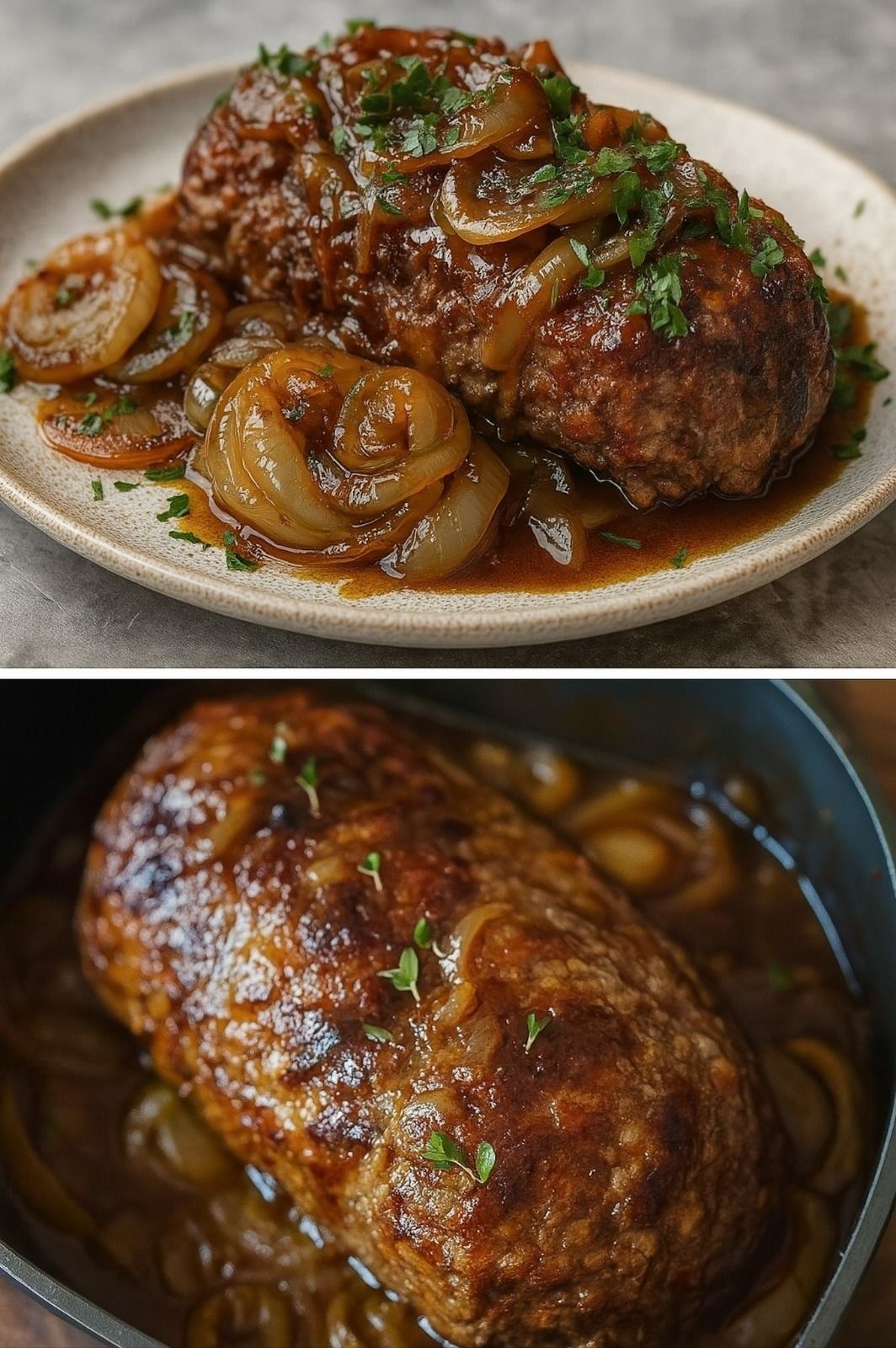 Supersaftiger Zwiebel-Hackbraten, so würzig, zart und aromatisch, dass er bei mir gleich zweimal im Monat auf den Tisch muss! Einmal probiert, für immer verliebt