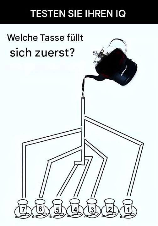 Stellen Sie sich ein visuelles Rätsel vor, bei dem Tassen und Rohre ineinander verflochten sind und Sie raten müssen, welche sich zuerst füllt. Auf den ersten Blick scheint es einfach, aber Vorsicht: Der Schein kann trügen. Sind Sie bereit, sich dieser Herausforderung zu stellen und Ihre analytischen Fähigkeiten auf die Probe zu stellen?