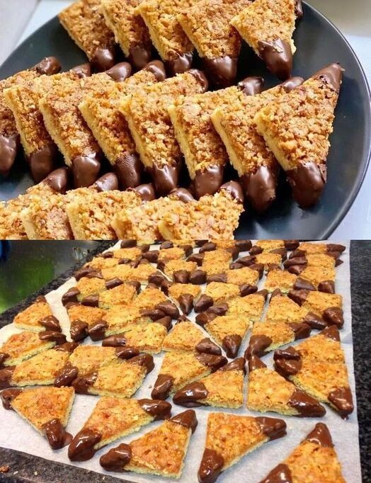 Noch die Kuvertüre schmelzen und die Ecken der Nussecken darin eintunken, dann vollständig aushärten lassen. Guten Appetit