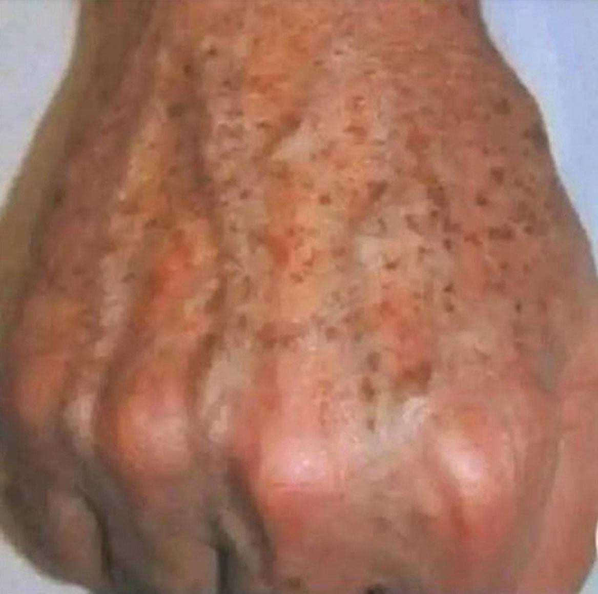 Flecken, die insbesondere mit zunehmendem Alter auf den Händen auftreten, werden oft als braune Flecken oder Altersflecken bezeichnet . Tatsächlich lautet sein richtiger Name Solar Lentigines . Sie entstehen hauptsächlich durch wiederholte Sonneneinstrahlung im Laufe der Jahre. Es ist fast so, als würde sich Ihre Haut an jeden UV-Strahl erinnern, dem sie ausgesetzt ist … und nach einer Weile sieht man das auch.