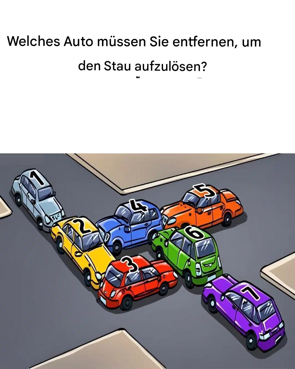 Hier ist ein kleines visuelles Puzzle, das Ihre Beobachtungsgabe und Logik anspricht. Das Ziel ist (vordergründig) einfach: Identifizieren Sie das Auto, das bewegt werden muss, um den Verkehrsfluss zu erleichtern.