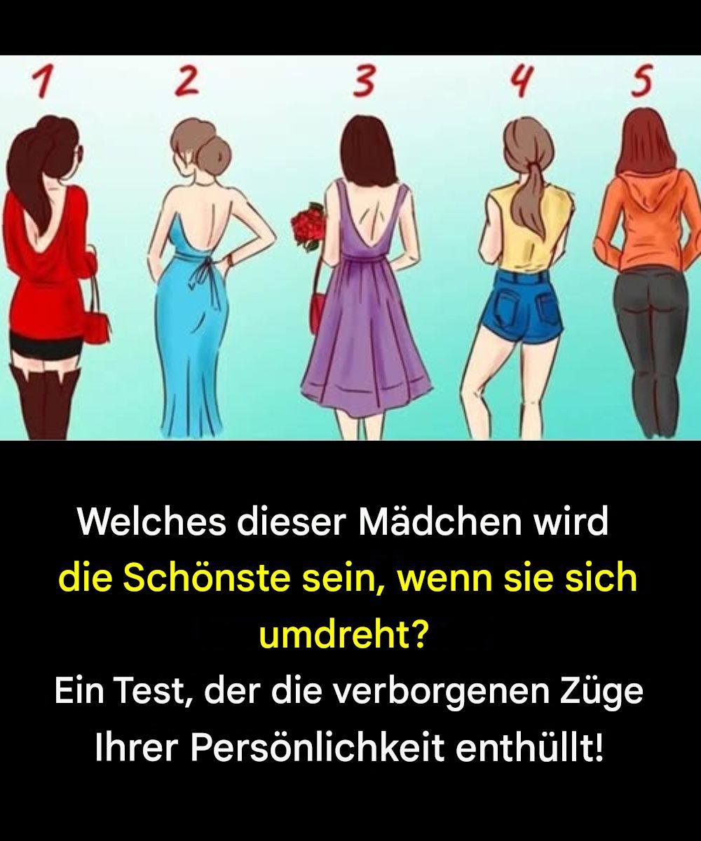 Was wäre, wenn eine einfache ästhetische Entscheidung mehr über Ihre Persönlichkeit verraten könnte, als Sie denken? Dieser spielerische Sehtest spricht Ihre Instinkte an und zeigt Ihnen wichtige Aspekte Ihres Denkens, Liebens und Reagierens. Vergessen Sie die Logik – vertrauen Sie Ihrem ersten Eindruck. Betrachten Sie die fünf weiblichen Silhouetten von hinten und wählen Sie diejenige, die Sie am schönsten finden. Ihre Wahl könnte mehr aussagen, als Sie ahnen!